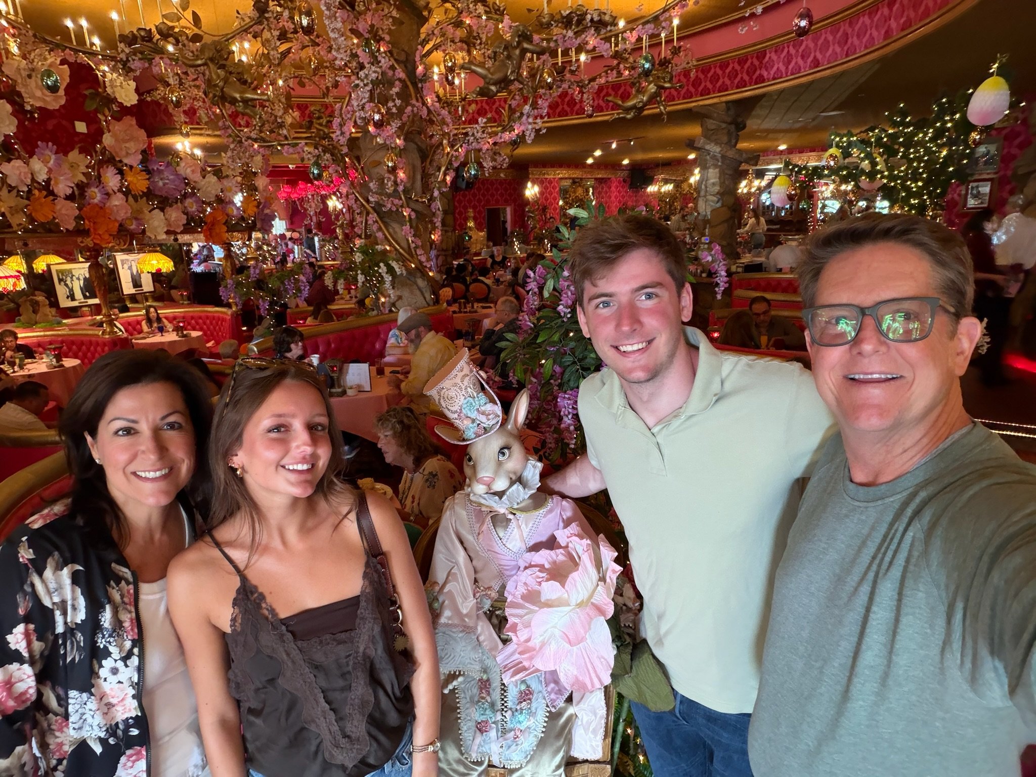 While out west, Carolyn visited charming Carmel-By-The-Sea, took in the views of Big Sur (with her laptop, of course!), did a lot of hiking, and enjoyed time with her family, including her daughter Sophie and nephew Rex, both of whom are students at Cal Poly. The four of them enjoyed Easter brunch at Copper Cafe at the iconic Madonna Inn in San Luis Obispo, California. The Copper Cafe is a famous whimsical dining spot known for its pink decor, stone fireplace, and extensive dessert menu, particularly its signature cakes.